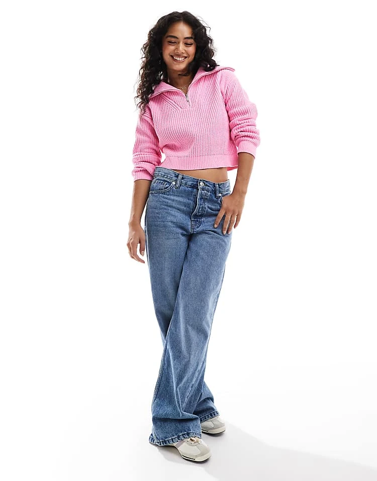 Bershka High Waisted Wide Leg Jeans In Indigo Wash For Women Blue