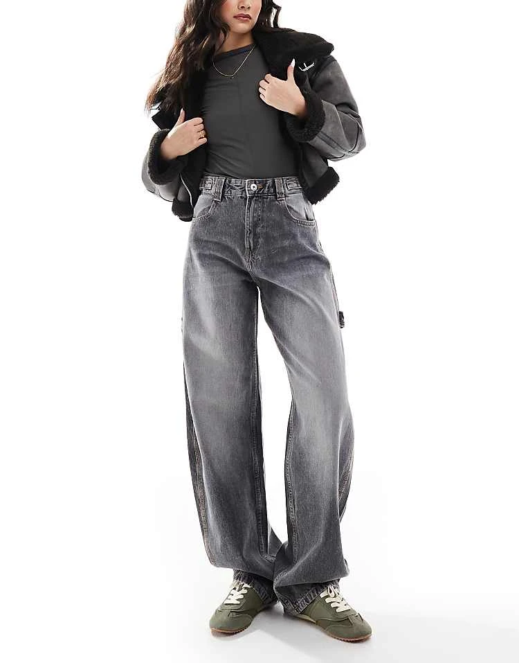 Bershka Petite High Waisted Wide Leg Jeans In Black For Women Black