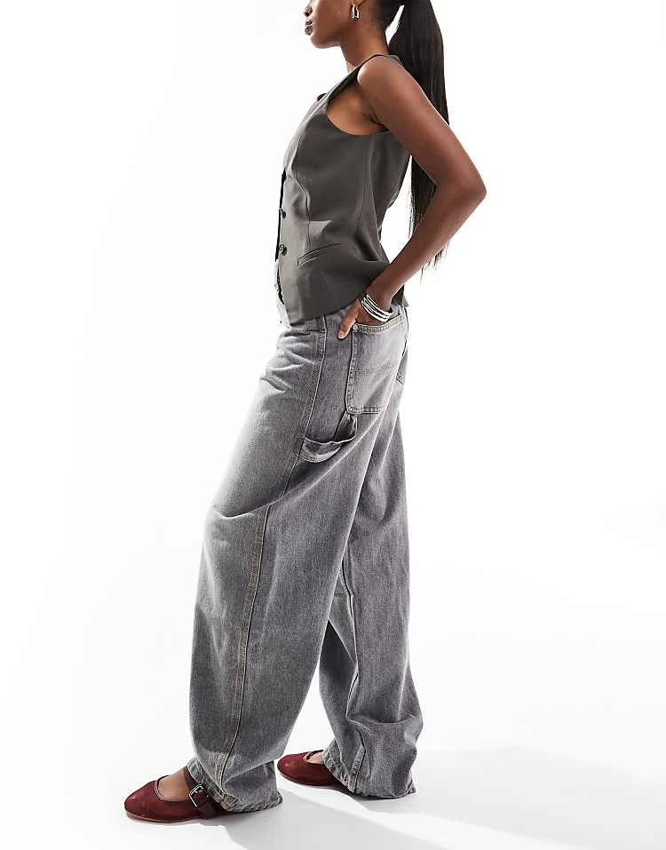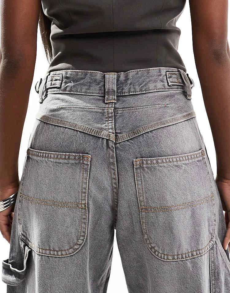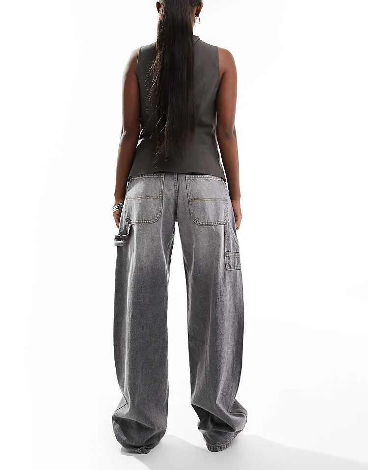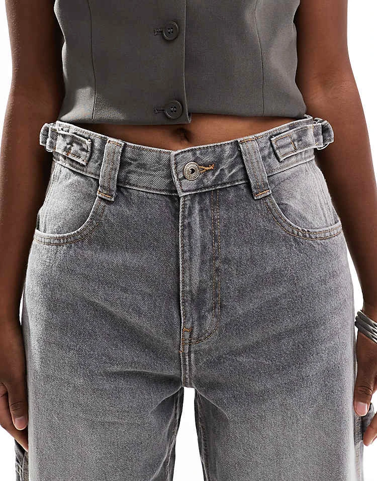 Bershka High Waisted 90s Wide Leg Jeans In Washed Grey For Women