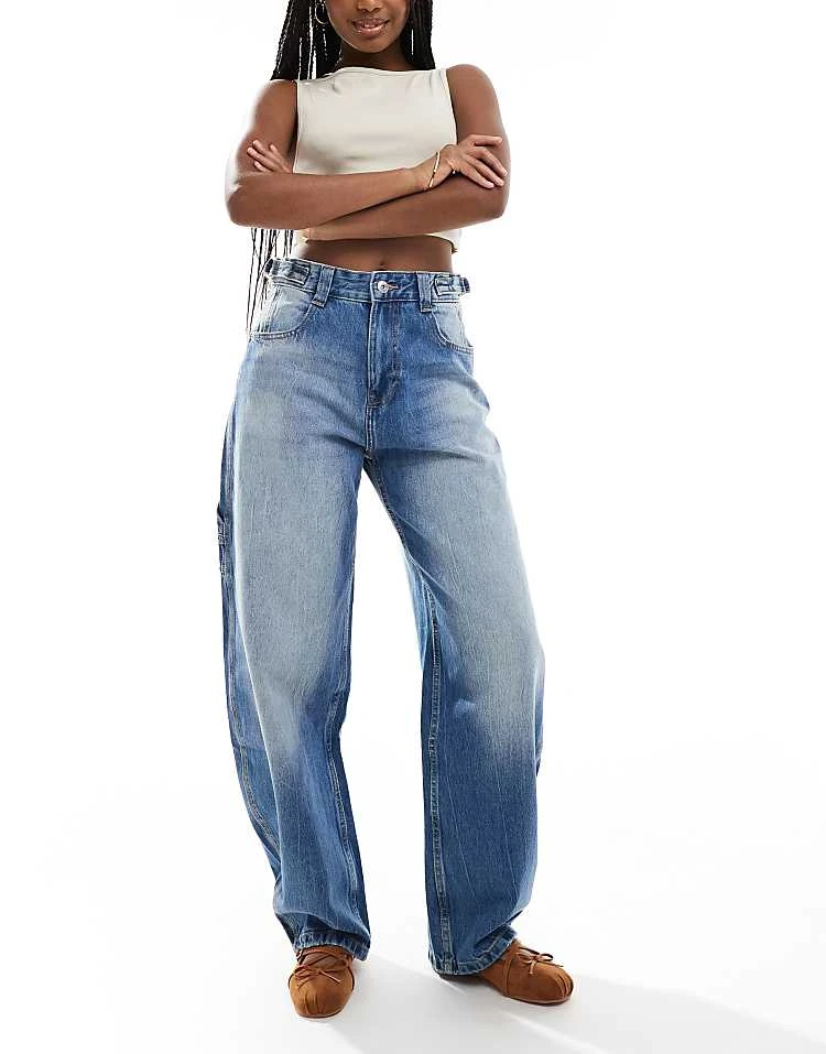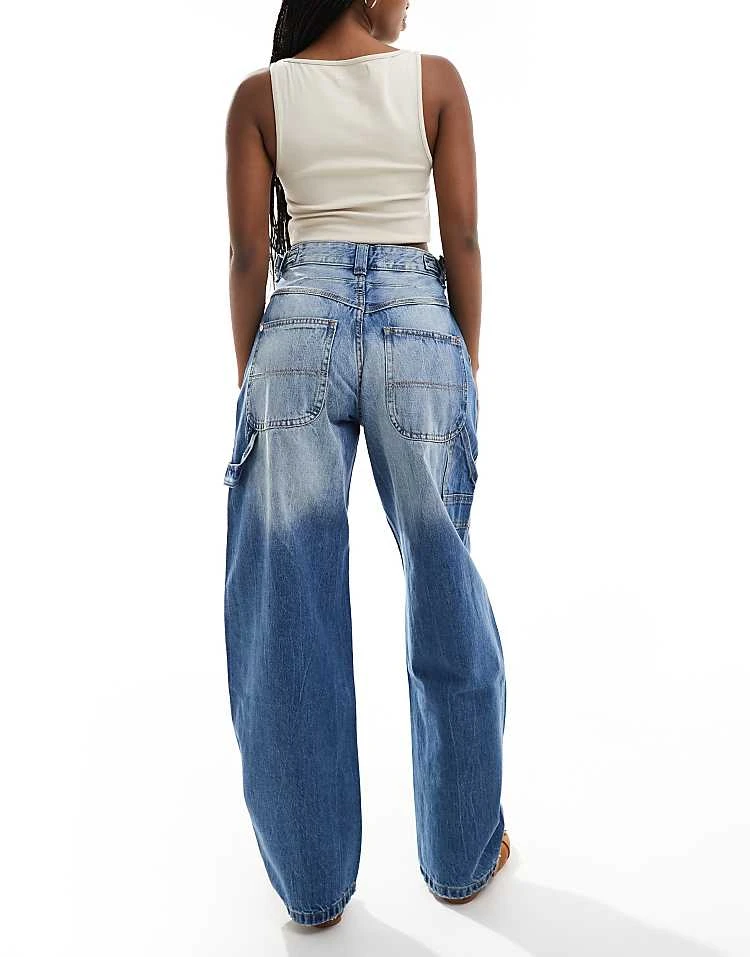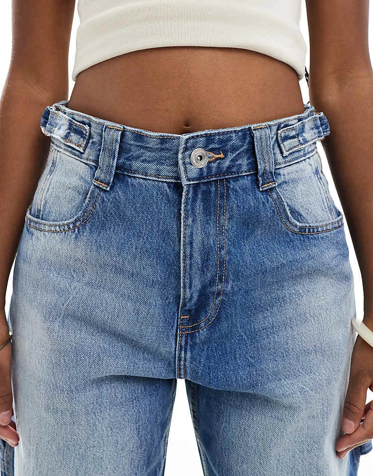 Bershka High Waisted Wide Leg Jeans In Indigo Wash For Women Blue