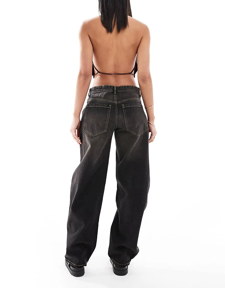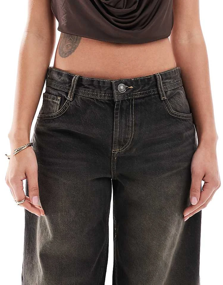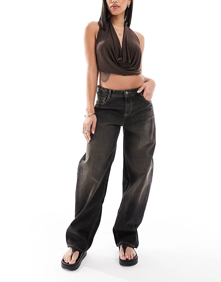 Bershka High Waisted 90s Wide Leg Jeans In Washed Grey For Women
