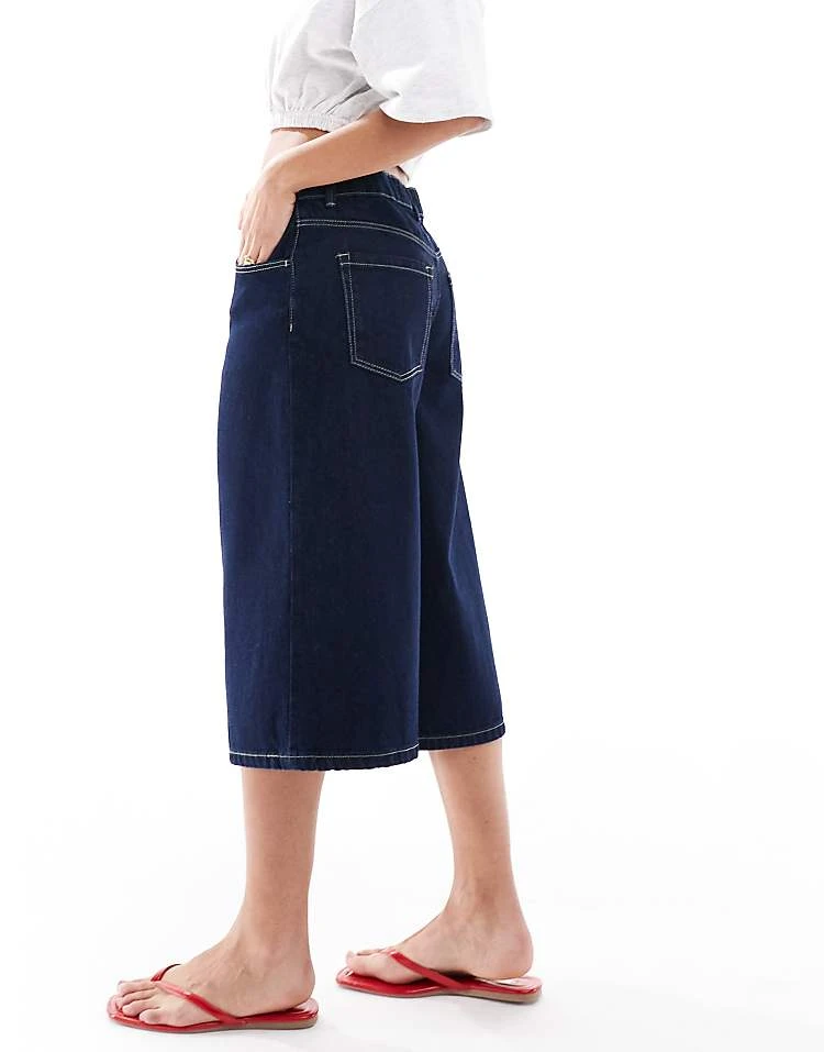Bershka Clean Wide Leg Jeans In Authentic Dark Blue For Women