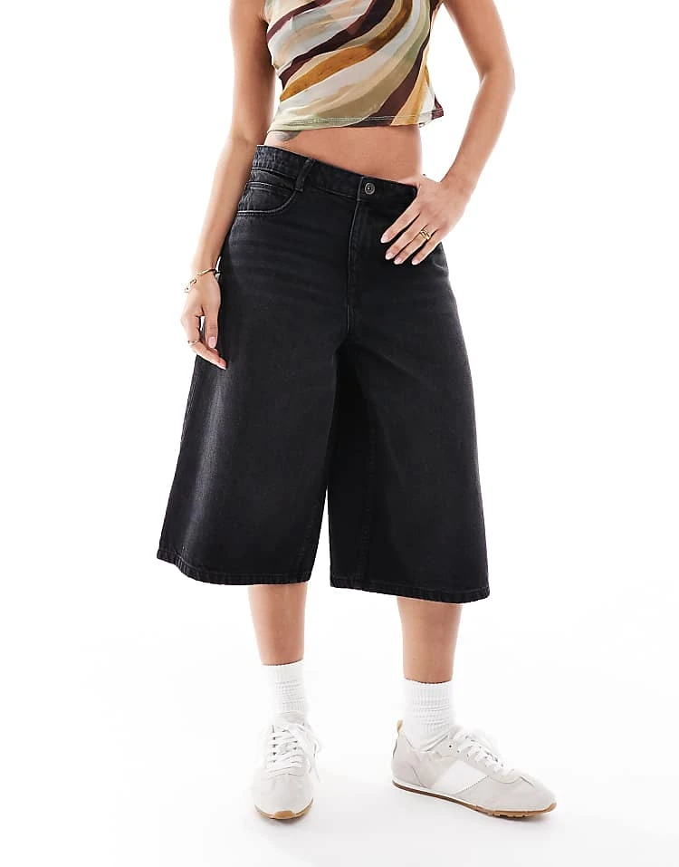 Bershka Petite High Waisted Wide Leg Jeans In Black For Women Black