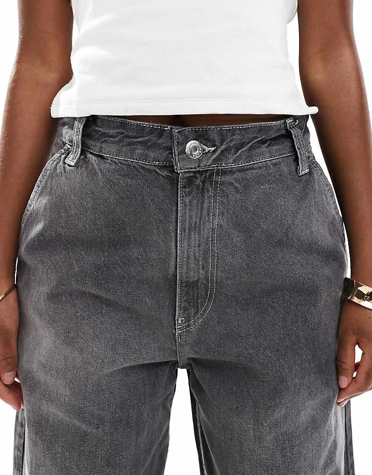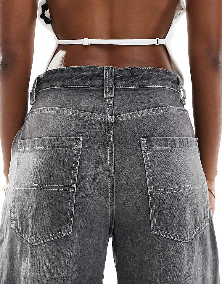 Bershka High Waisted 90s Wide Leg Jeans In Washed Grey For Women