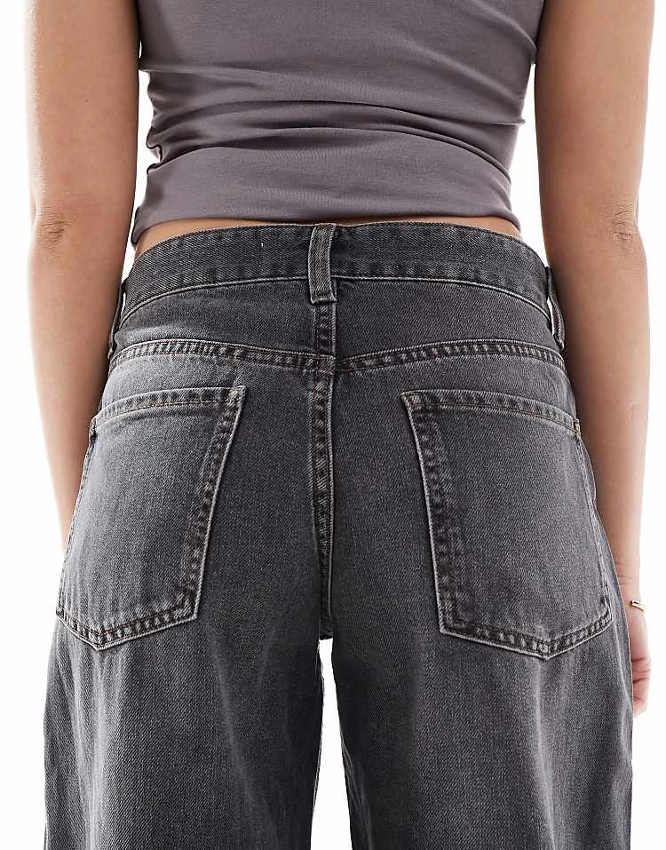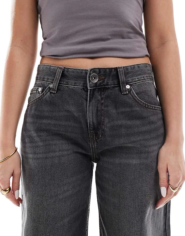Bershka High Waisted 90s Wide Leg Jeans In Washed Grey For Women
