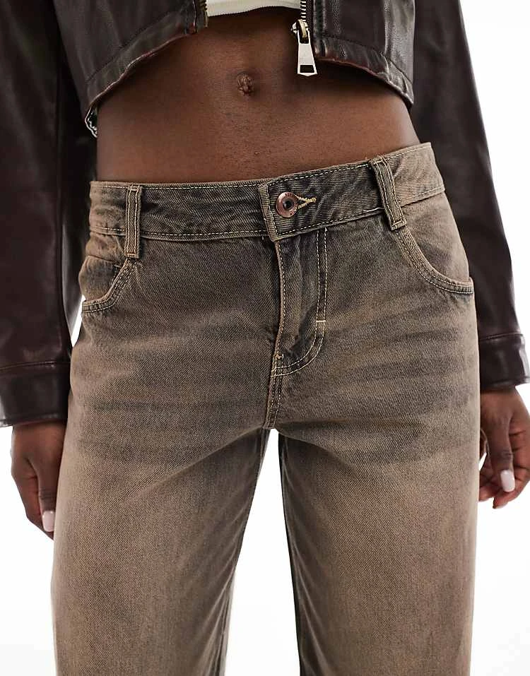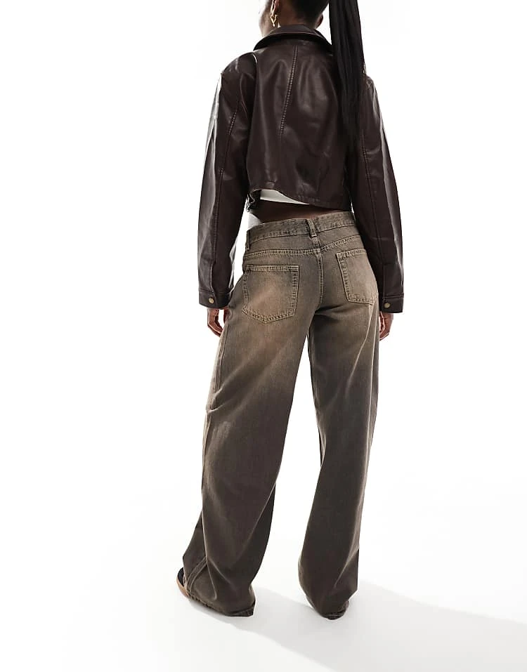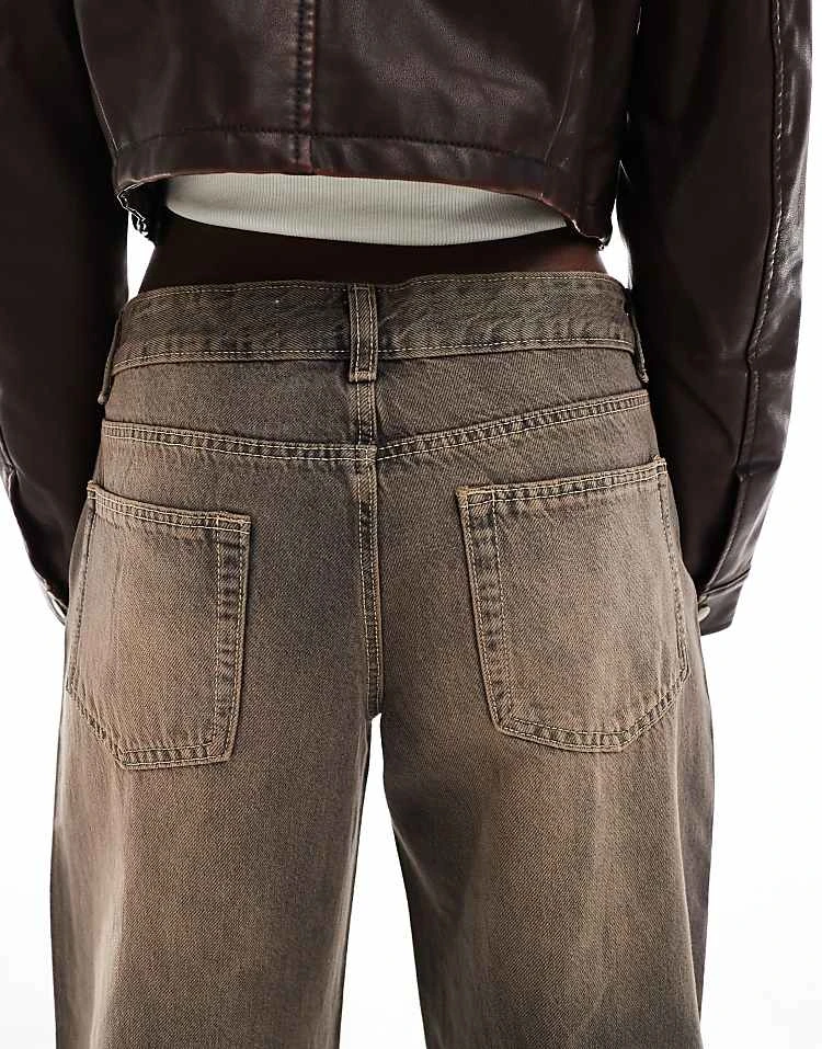 Bershka High Waisted 90s Wide Leg Jeans In Washed Grey For Women
