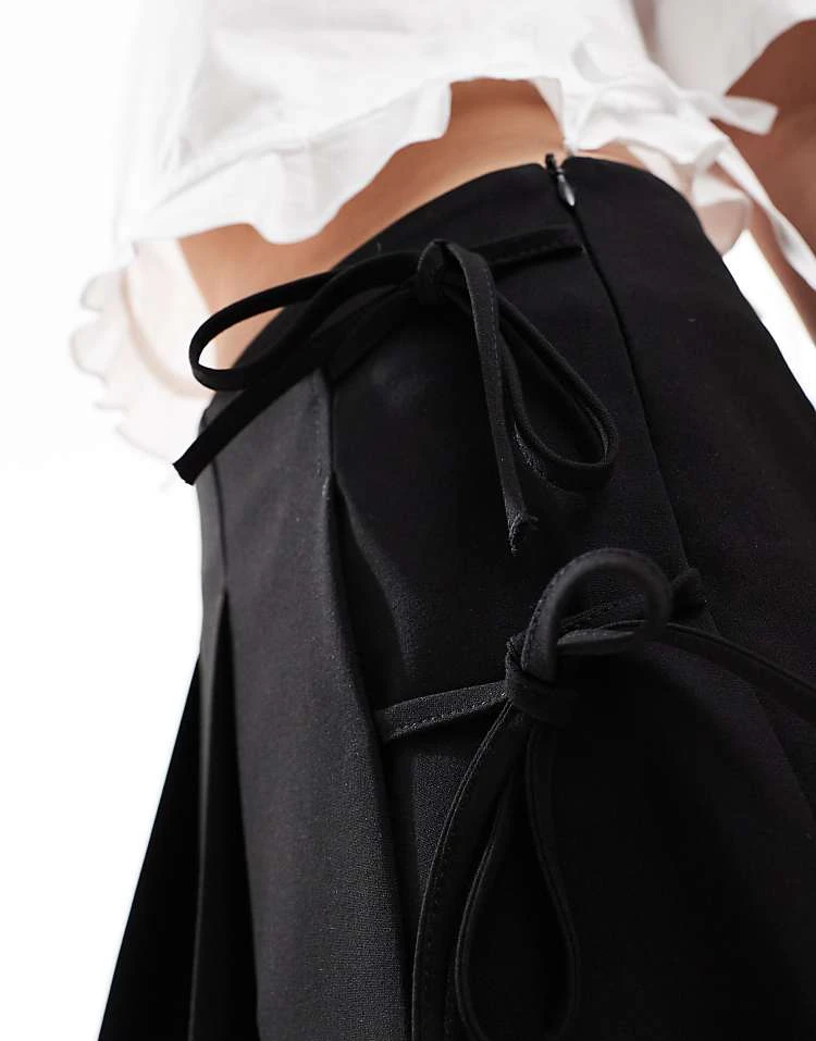 Bershka Tie Waist Wide Leg Linen Trousers In Black For Women