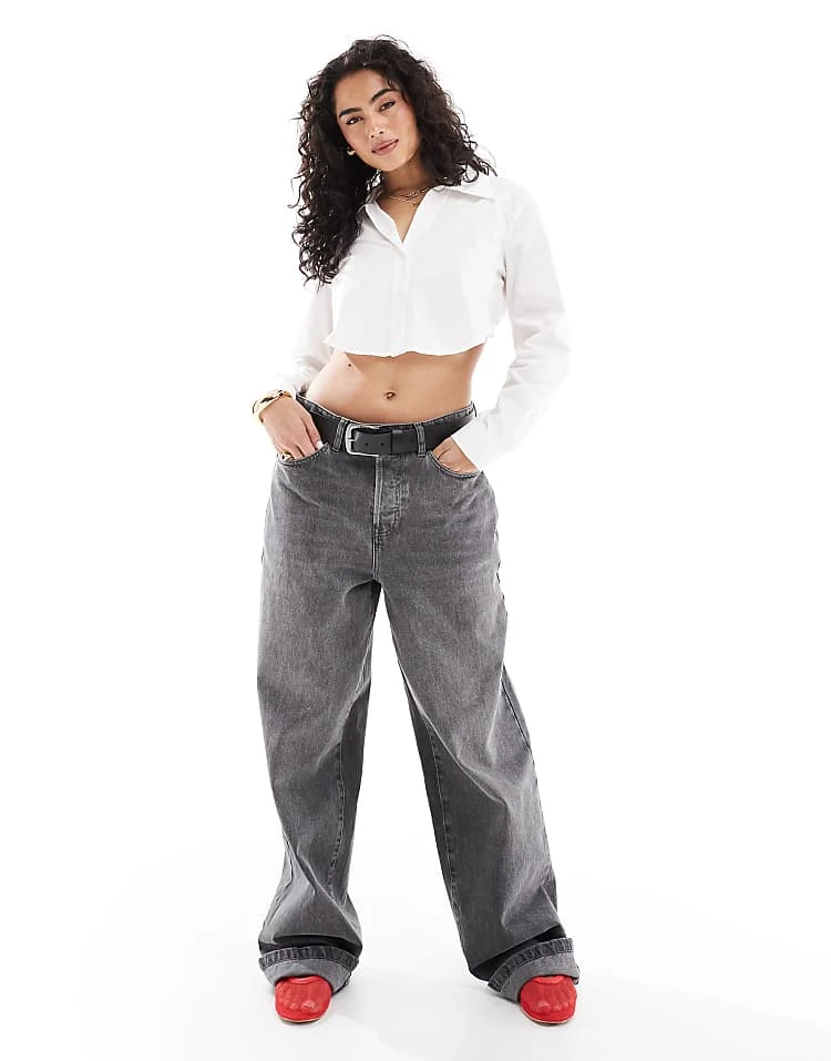Bershka High Waisted Wide Leg Jeans In Black For Women Black