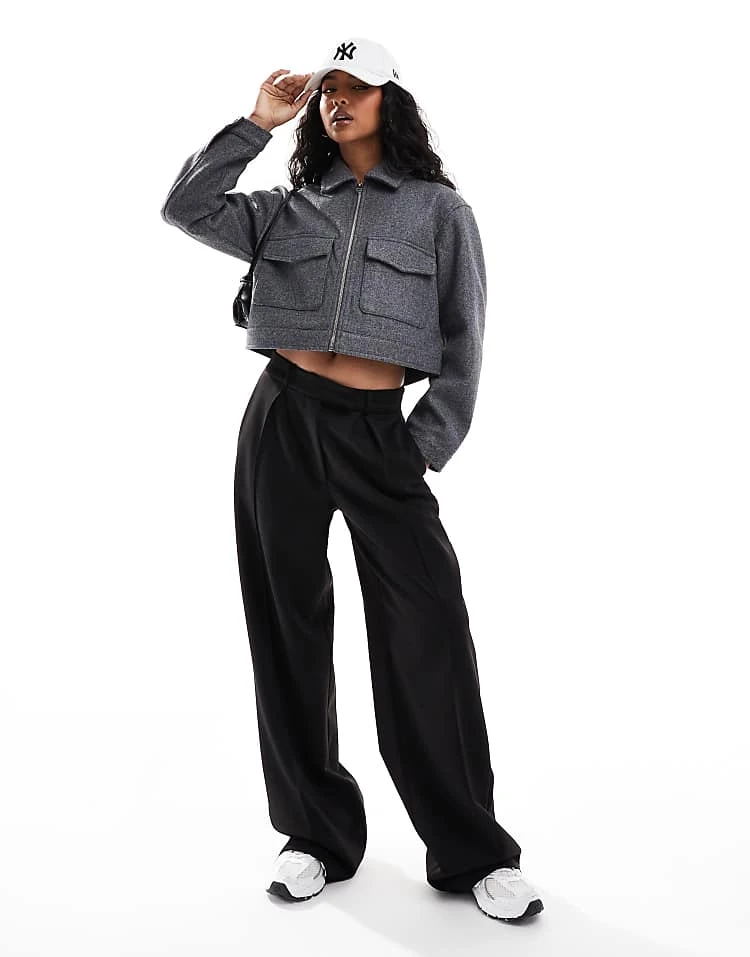 Bershka High Waisted 90s Wide Leg Jeans In Washed Grey For Women