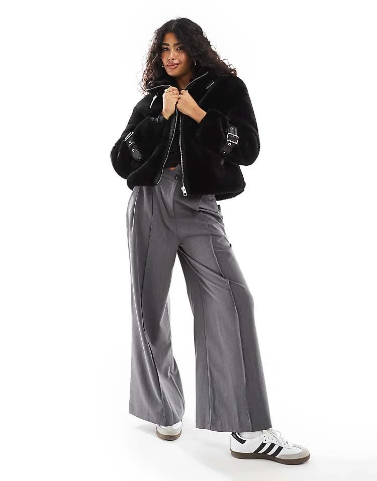 Bershka Tie Waist Wide Leg Linen Trousers In Black For Women