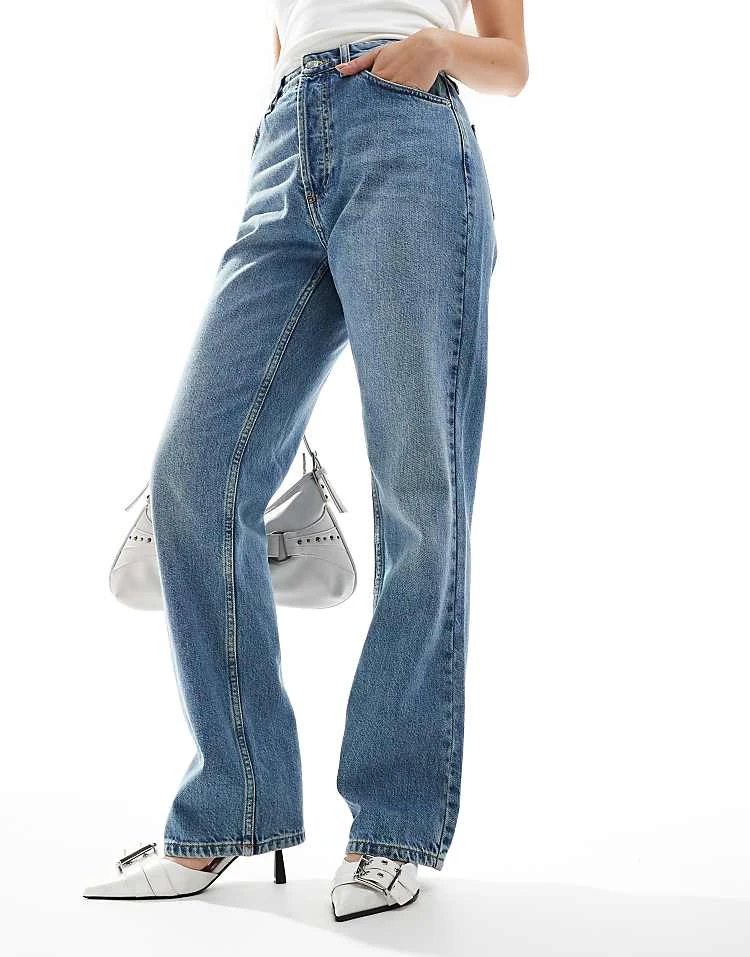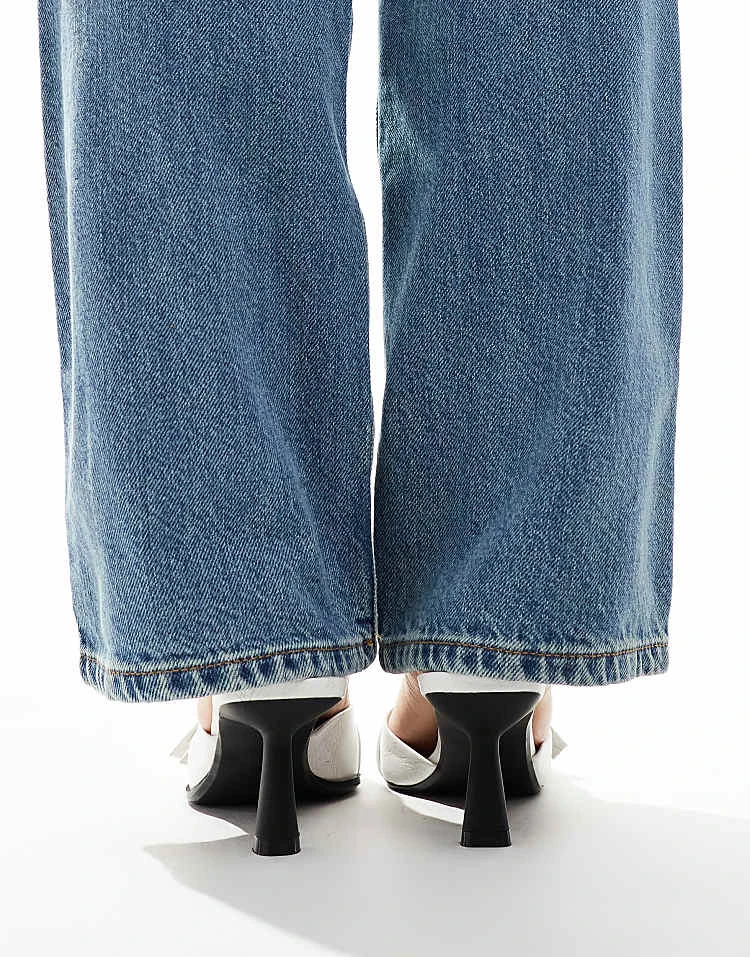 Bershka High Waisted Wide Leg Jeans In Light Wash Blue For Women