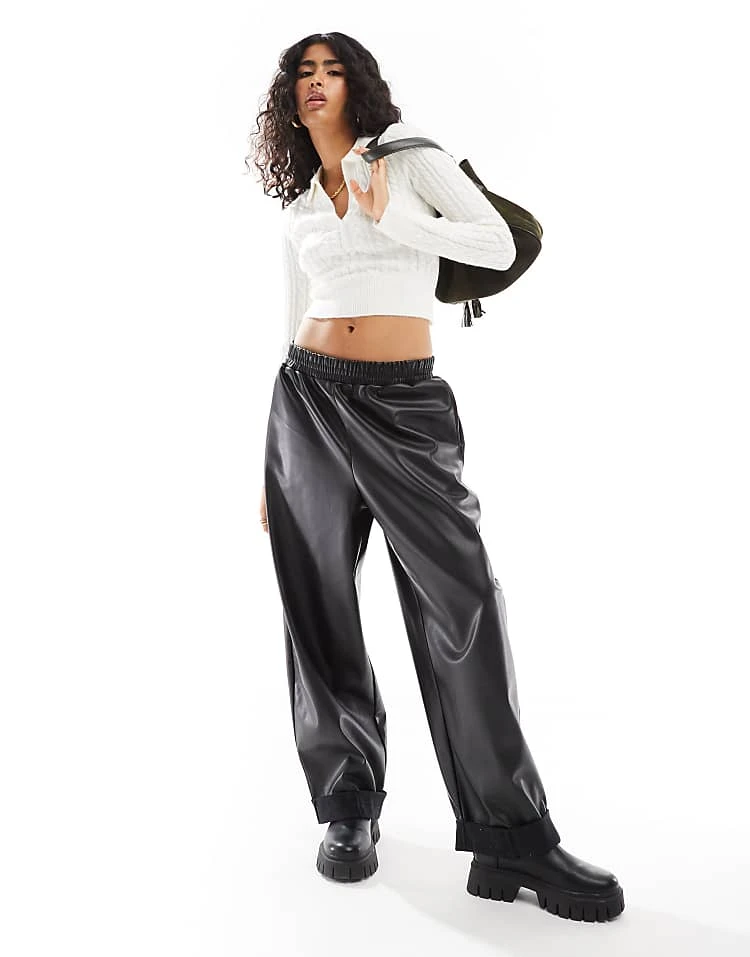 Bershka High Waisted Wide Leg Jeans In Black For Women Black
