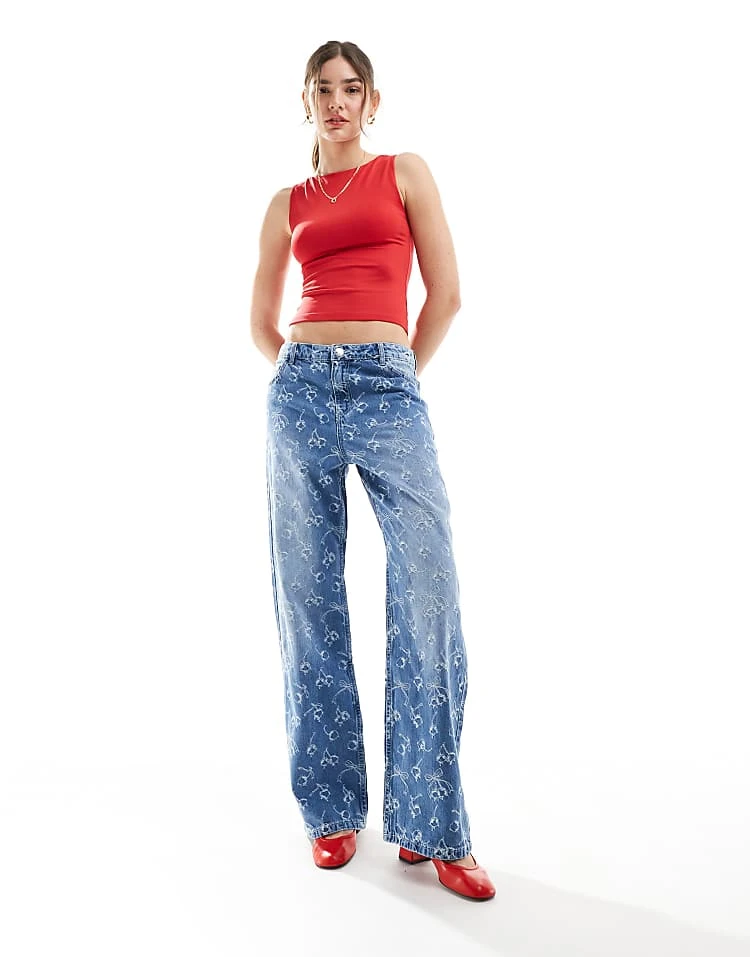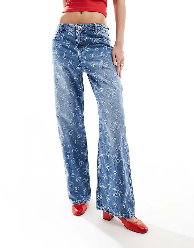 Bershka High Waisted 90s Wide Leg Jeans In Washed Grey For Women