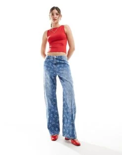 Bershka Clean Wide Leg Jeans In Authentic Dark Blue For Women
