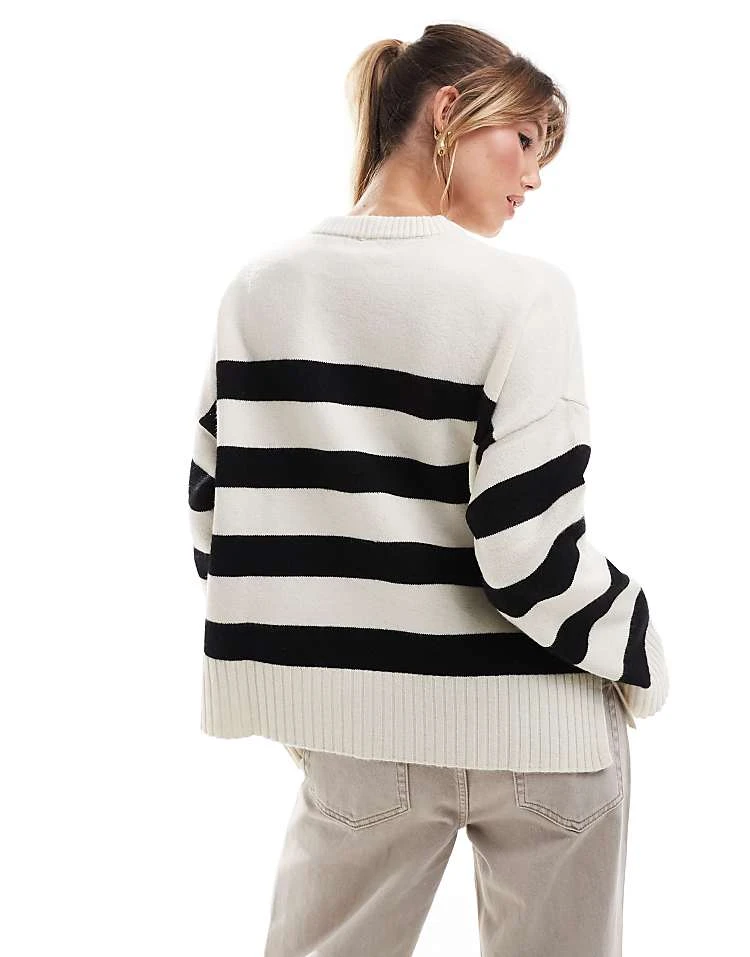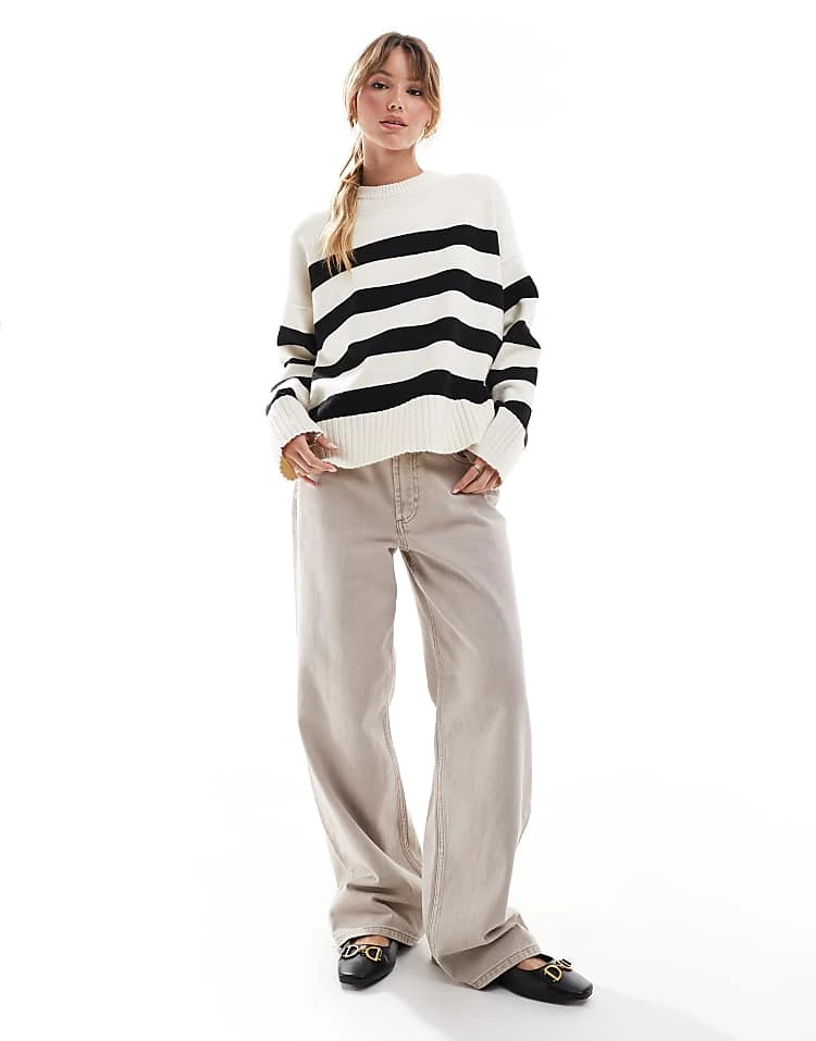 Bershka Tie Waist Wide Leg Linen Trousers In Ecru Stripe For Women