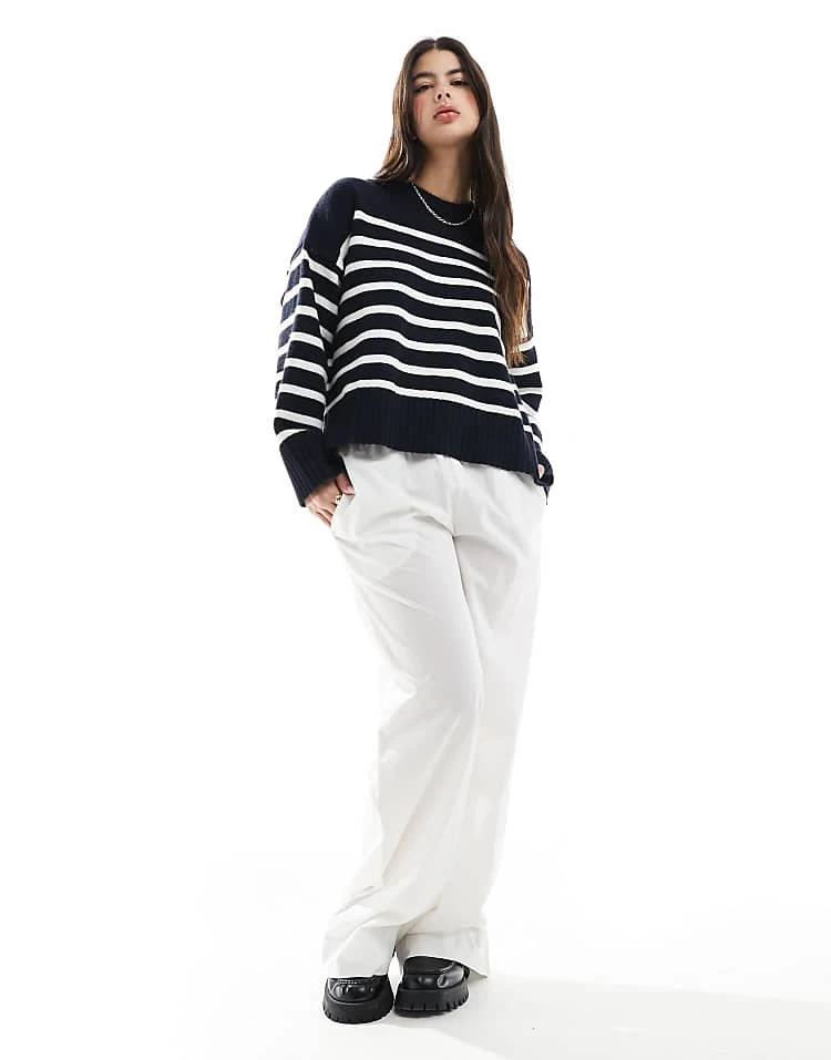 Bershka Clean Wide Leg Jeans In Authentic Dark Blue For Women