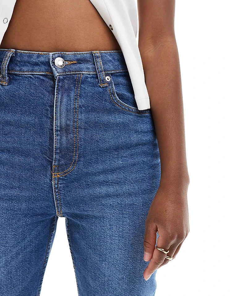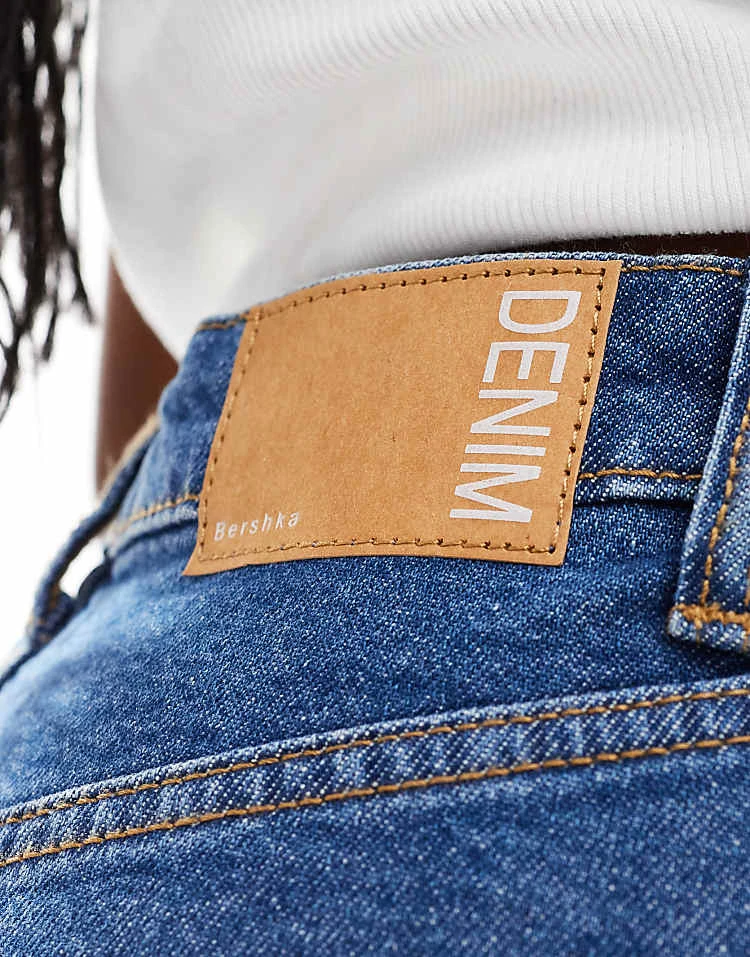 Bershka High Waisted Wide Leg Jeans In Light Wash Blue For Women
