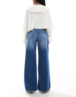 Bershka High Waisted Wide Leg Jeans In Indigo Wash For Women Blue