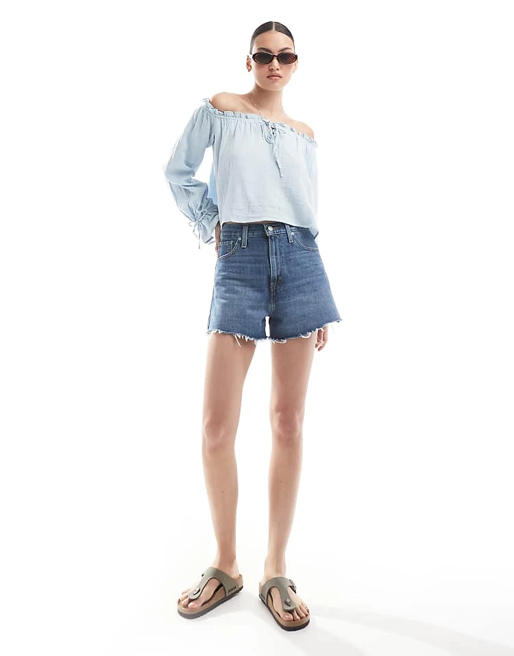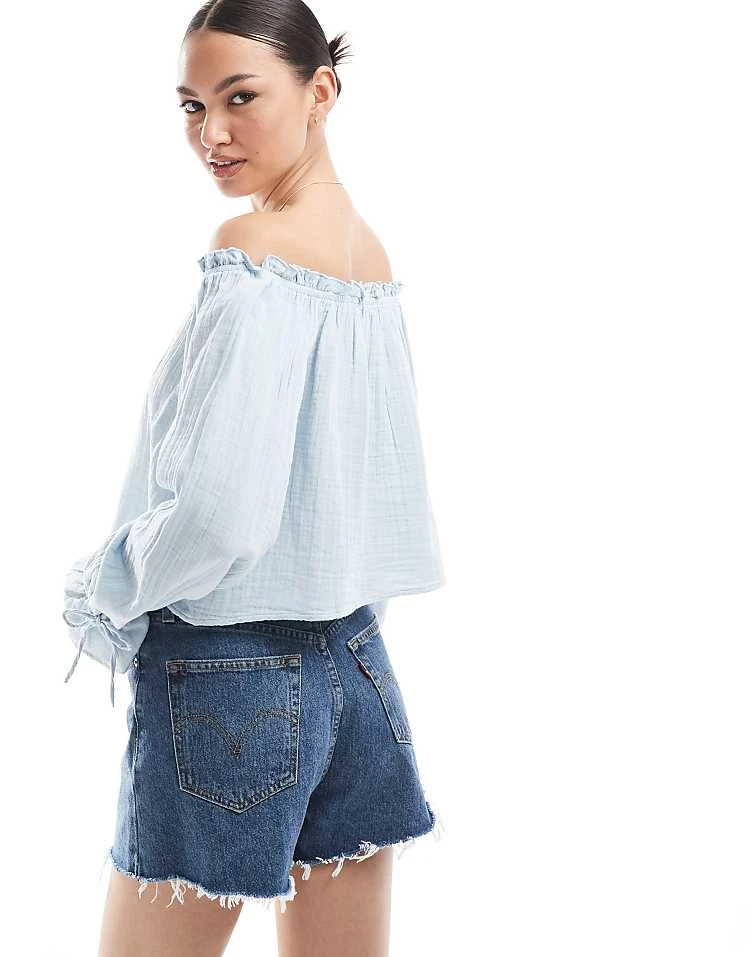Bershka High Waisted Wide Leg Jeans In Indigo Wash For Women Blue