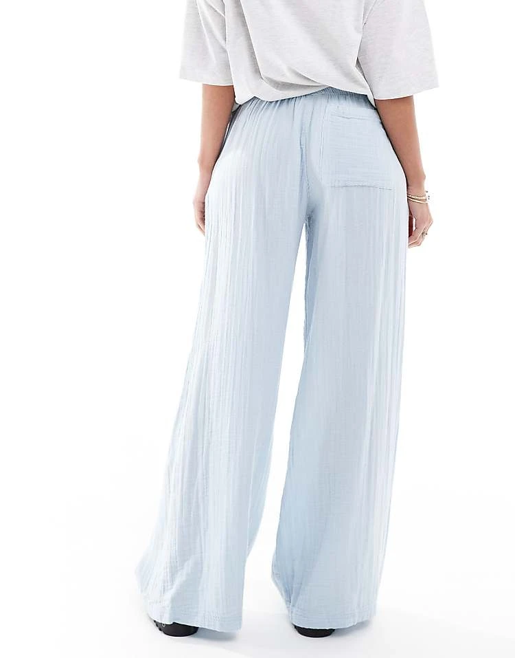 Bershka Tie Waist Wide Leg Linen Trousers In White For Women