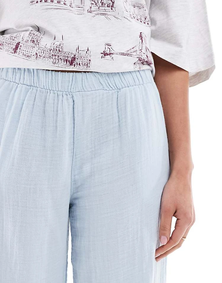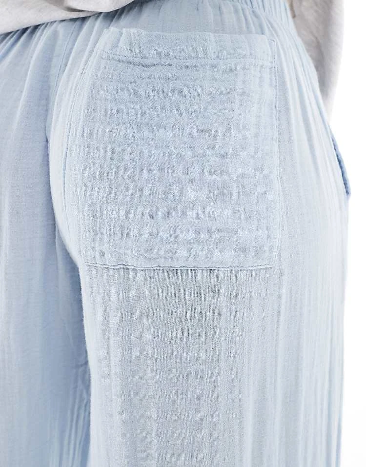Bershka Crinkle Wide Leg Trousers And Tie Back Shirt Co-ord In Brown