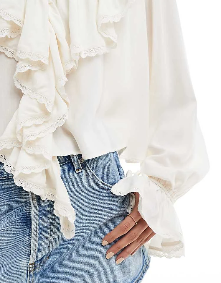 Bershka Tie Waist Wide Leg Linen Trousers In Ecru Stripe For Women