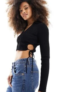 Bershka Soft Touch High Neck Top And Trousers Co-ord In Dark Grey