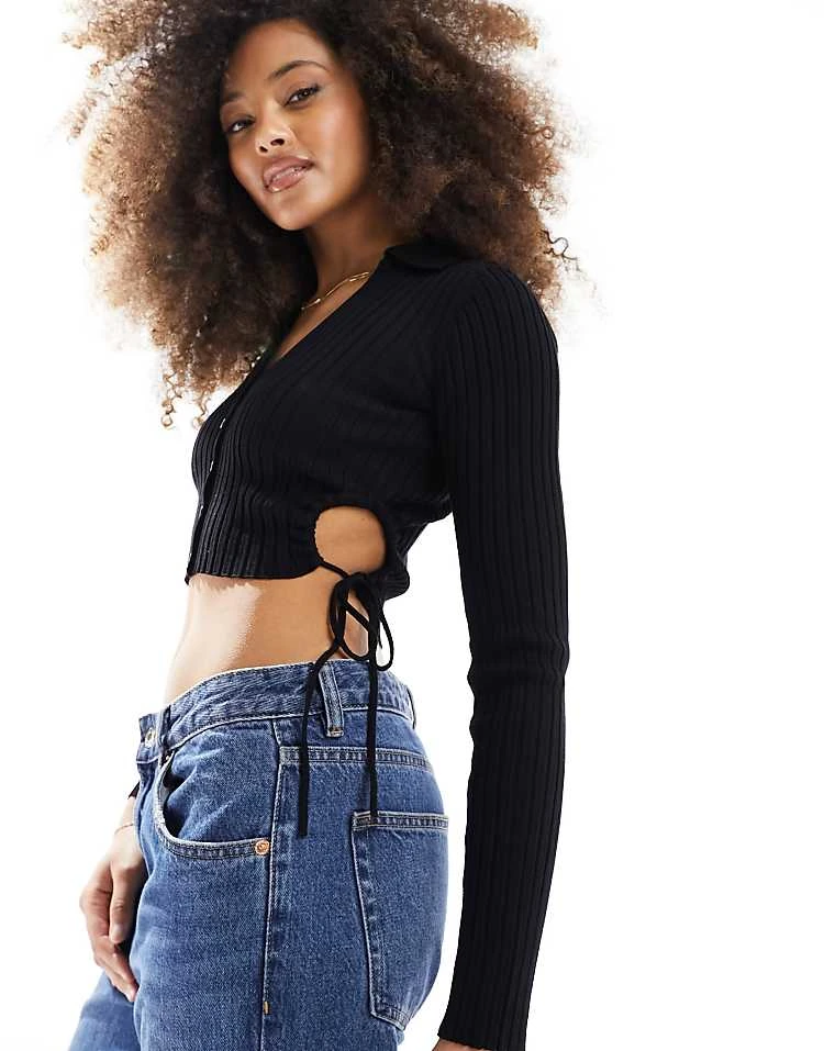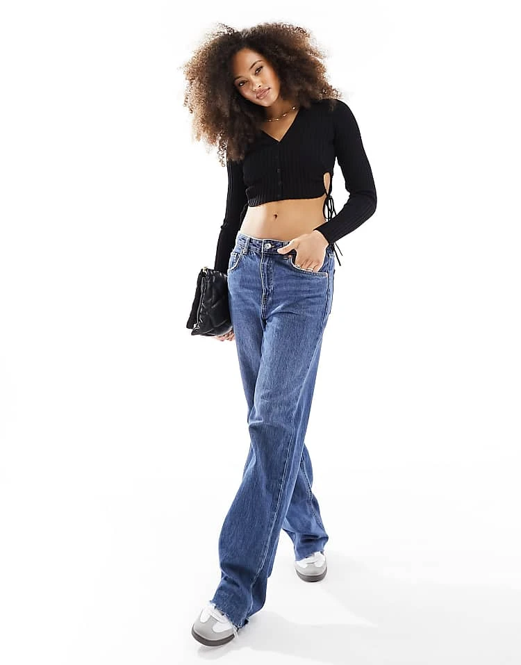 Bershka Petite High Waisted Wide Leg Jeans In Black For Women Black