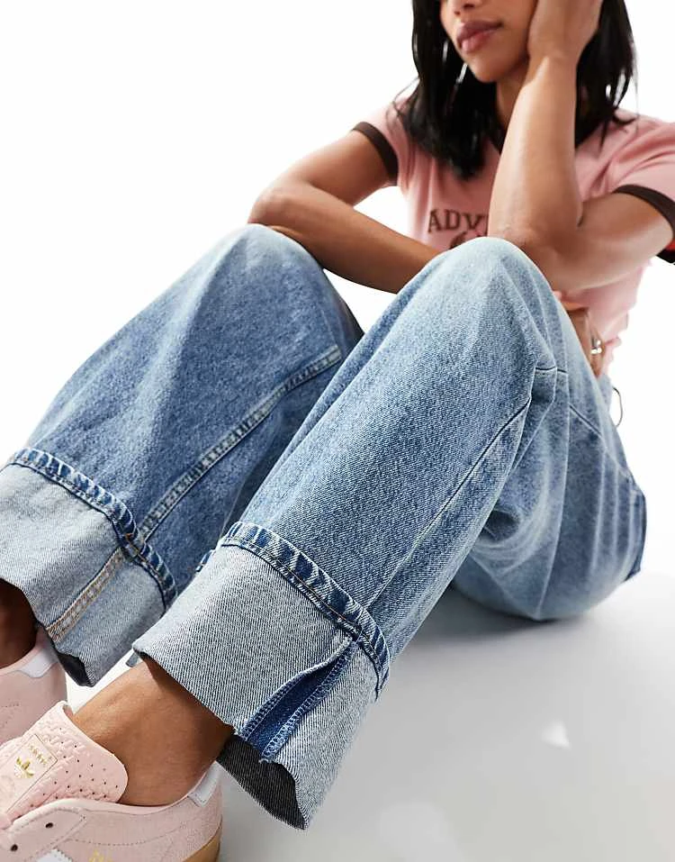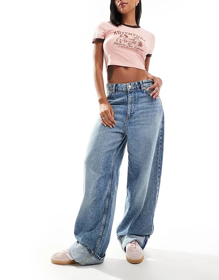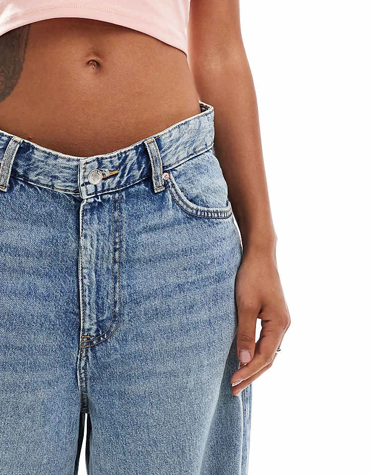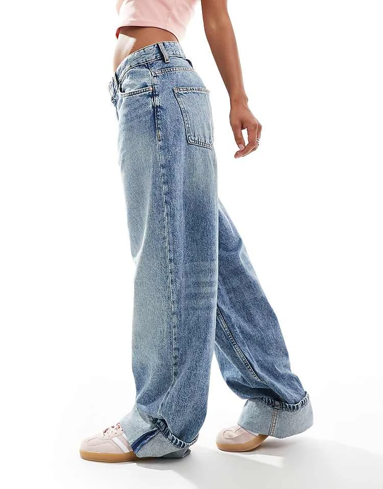 Bershka High Waisted 90s Wide Leg Jeans In Washed Grey For Women