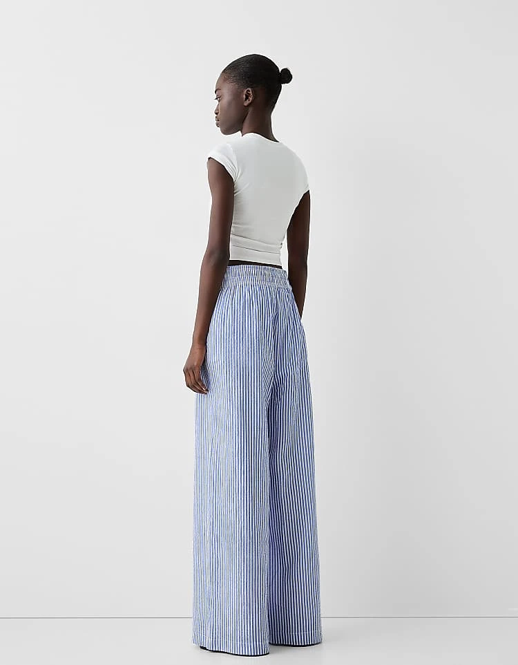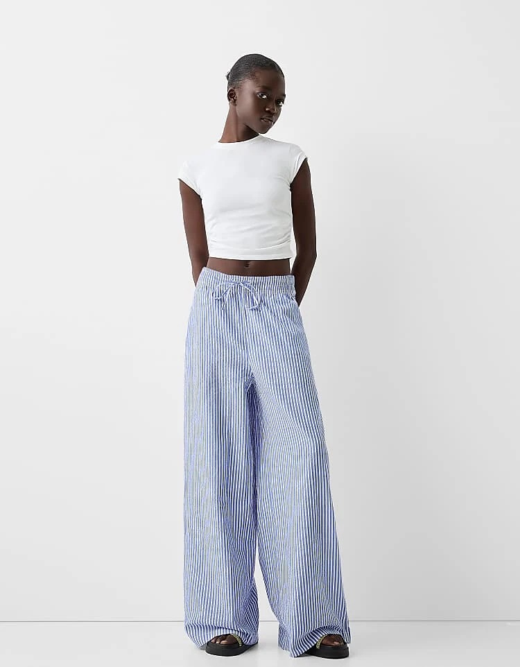 Bershka High Waisted Wide Leg Jeans In Light Wash Blue For Women