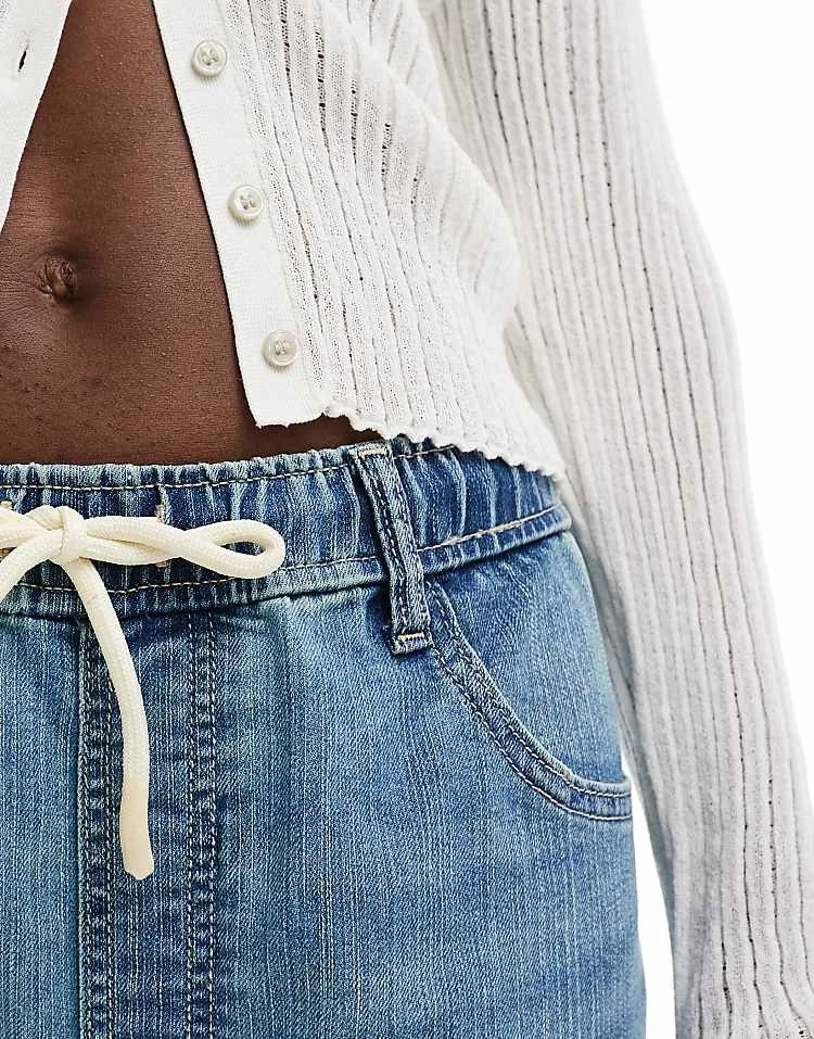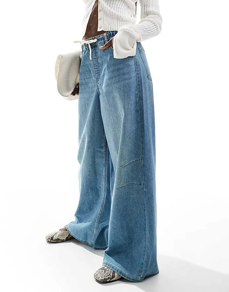 Bershka High Waisted Wide Leg Jeans In Indigo Wash For Women Blue