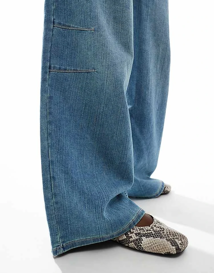 Bershka High Waisted 90s Wide Leg Jeans In Washed Grey For Women
