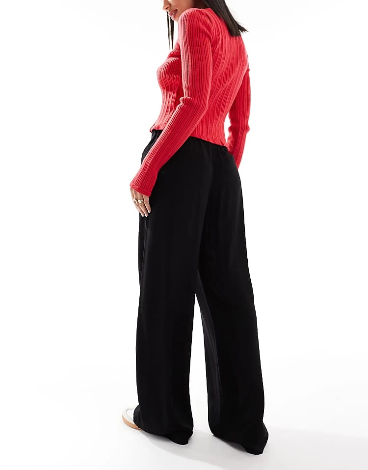 Bershka Petite High Waisted Wide Leg Jeans In Black For Women Black