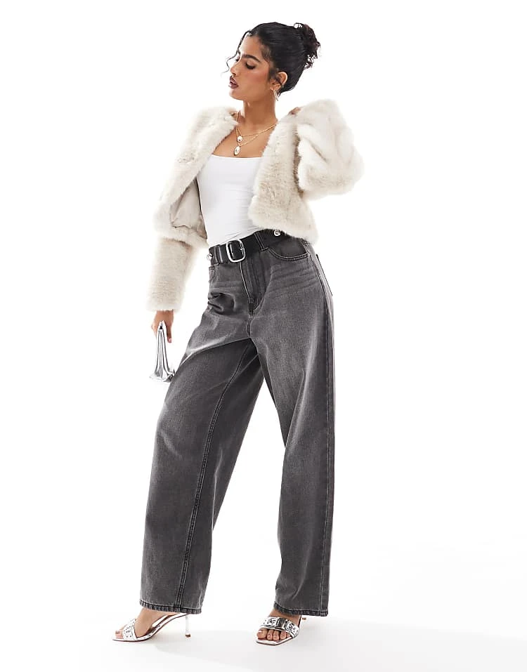 Bershka Petite High Waisted Wide Leg Jeans In Black For Women Black