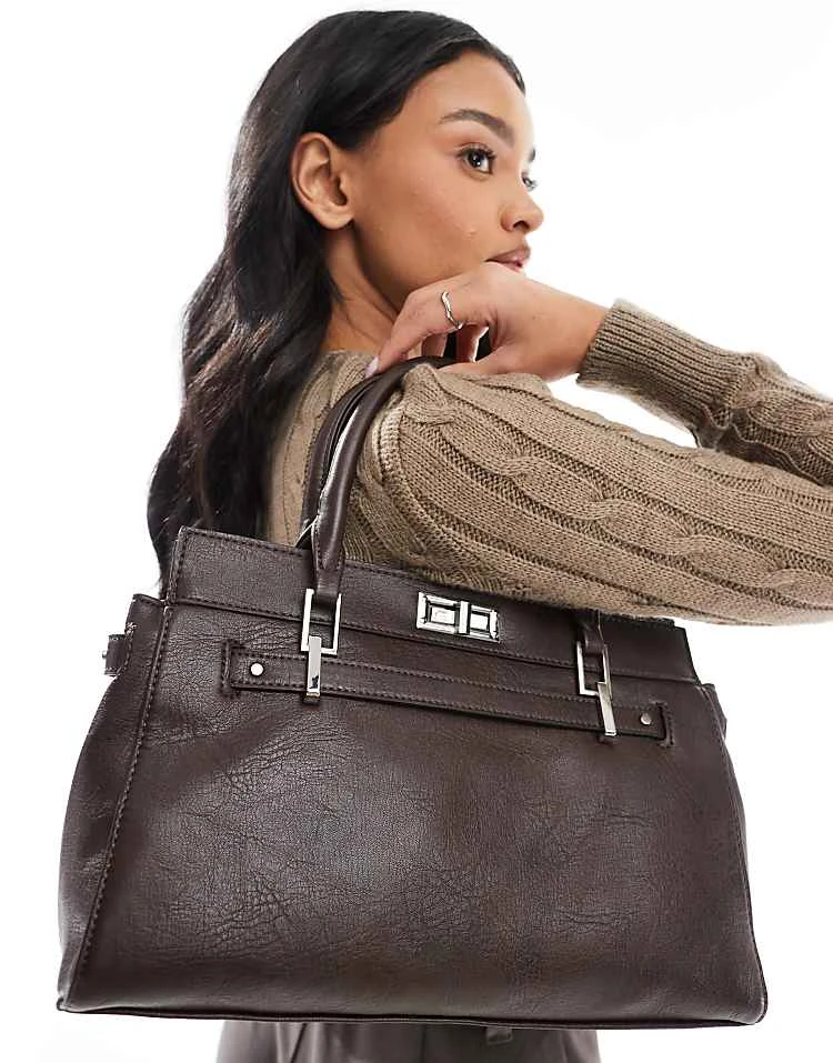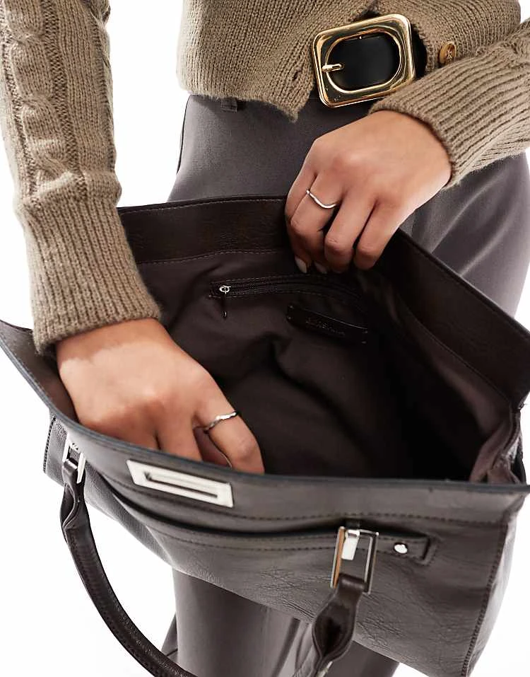 Bershka Crinkle Wide Leg Trousers And Tie Back Shirt Co-ord In Brown