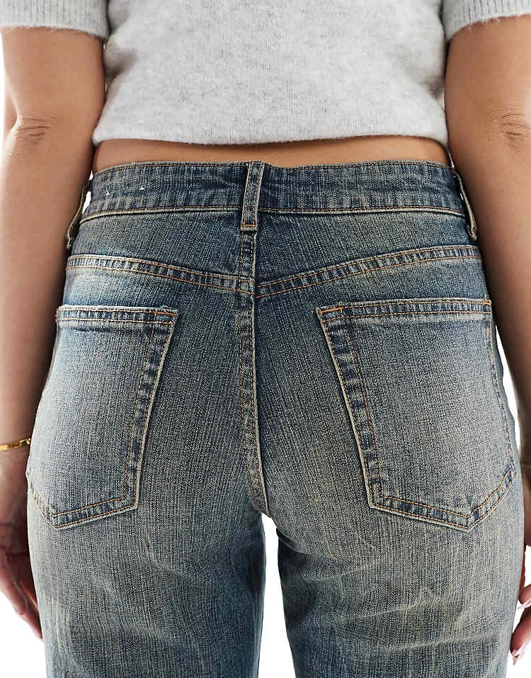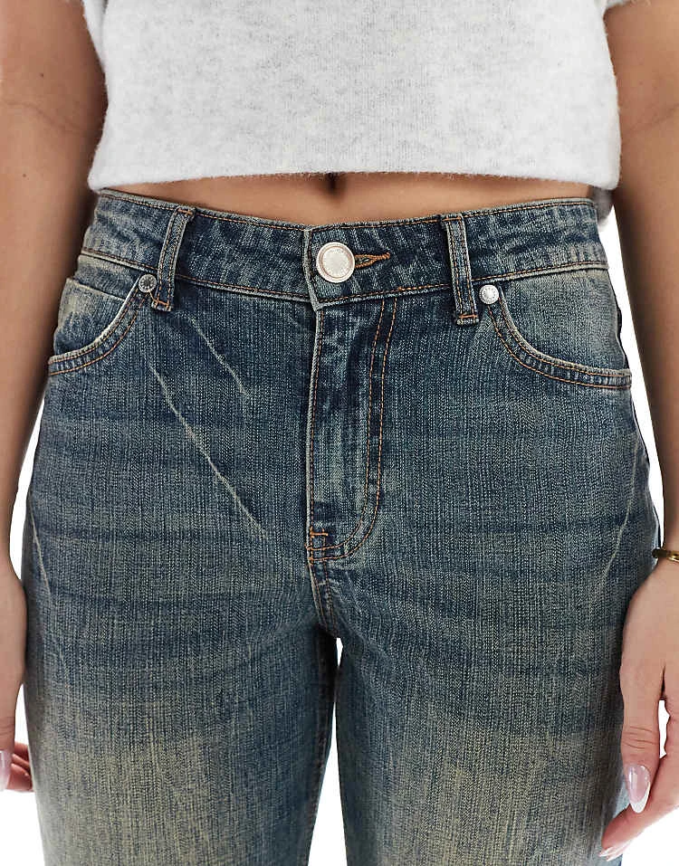 Bershka Clean Wide Leg Jeans In Authentic Dark Blue For Women