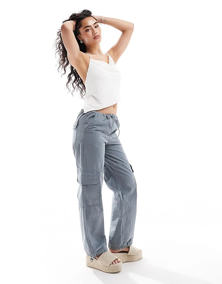 Bershka High Waisted Wide Leg Jeans In Light Wash Blue For Women