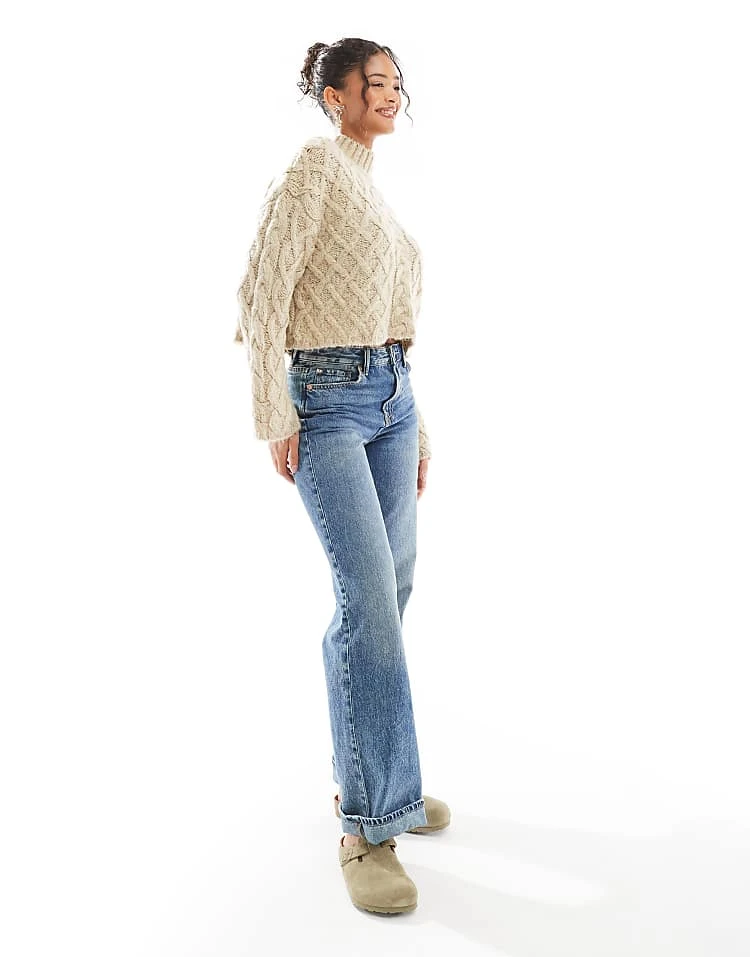 Bershka High Waisted Wide Leg Jeans In Black For Women Black
