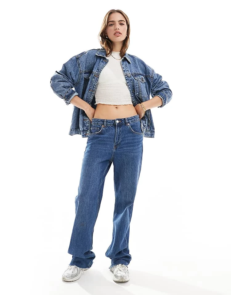 Bershka High Waisted Wide Leg Jeans In Light Wash Blue For Women