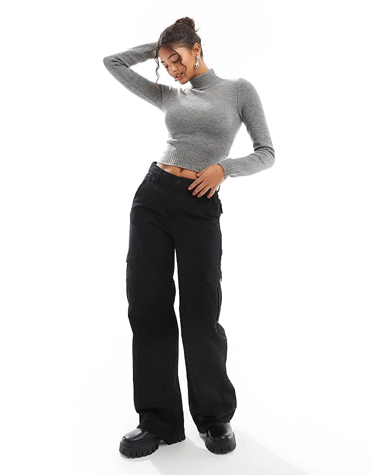 Bershka High Waisted Wide Leg Jeans In Black For Women Black