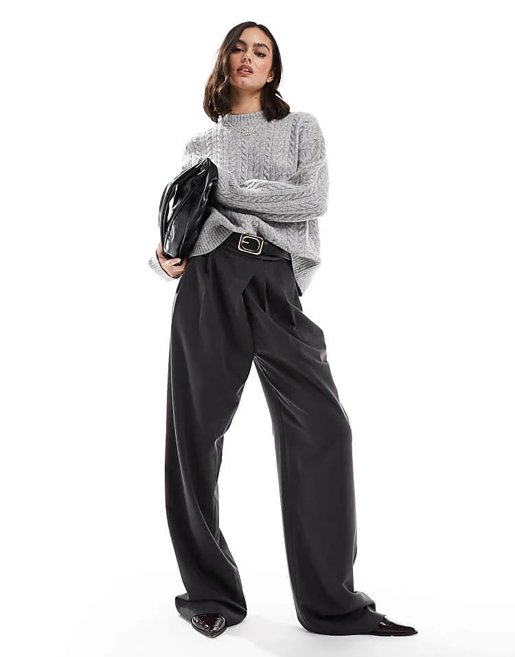 Bershka Petite High Waisted Wide Leg Jeans In Black For Women Black