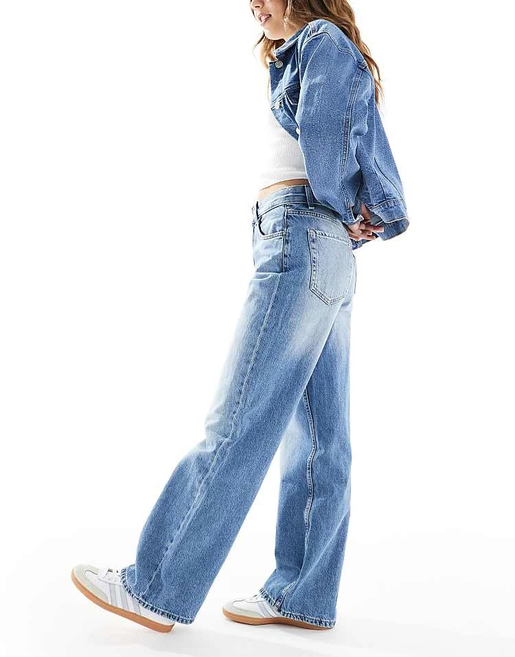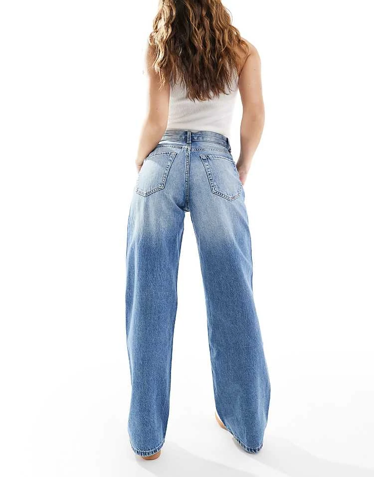 Bershka Super Baggy Wide Leg Jeans In Light Wash Blue For Women