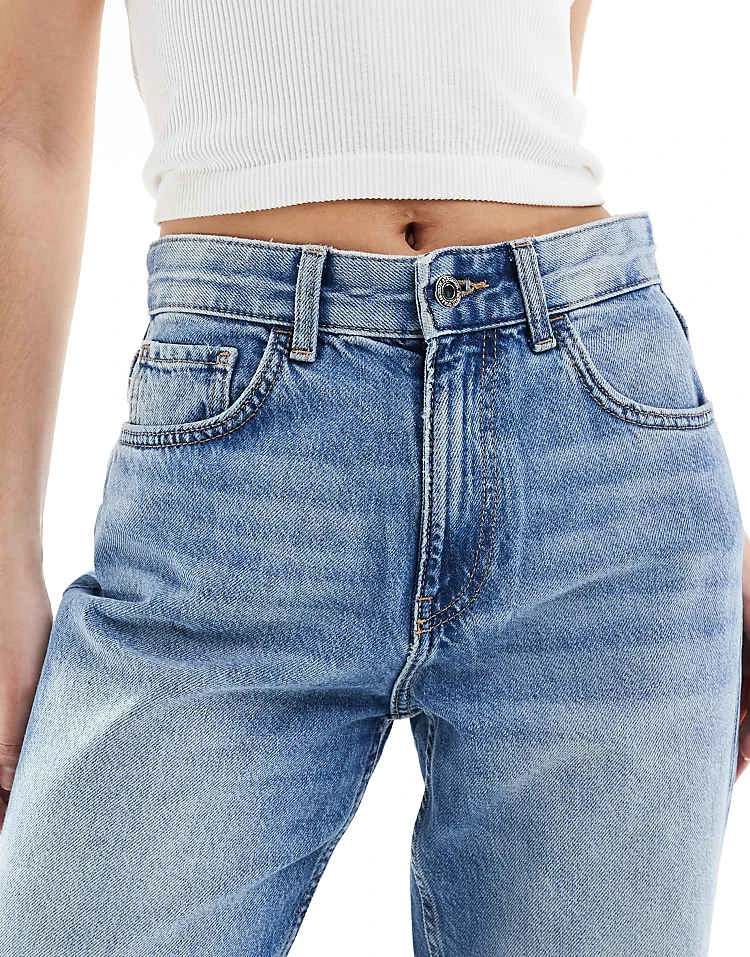 Bershka High Waisted Wide Leg Jeans In Indigo Wash For Women Blue