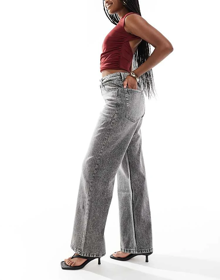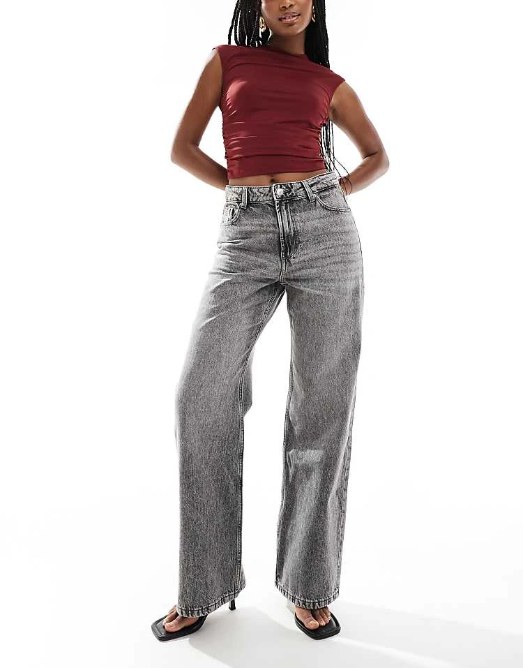Bershka Petite High Waisted Wide Leg Jeans In Black For Women Black