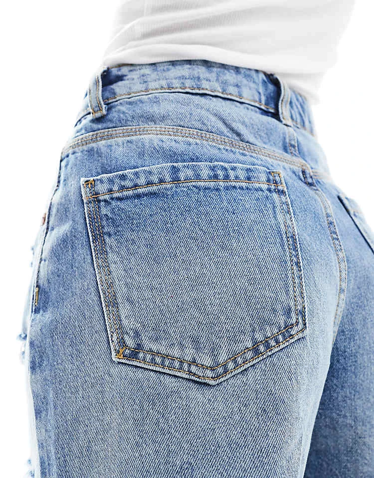 Bershka High Waisted Wide Leg Jeans In Indigo Wash For Women Blue