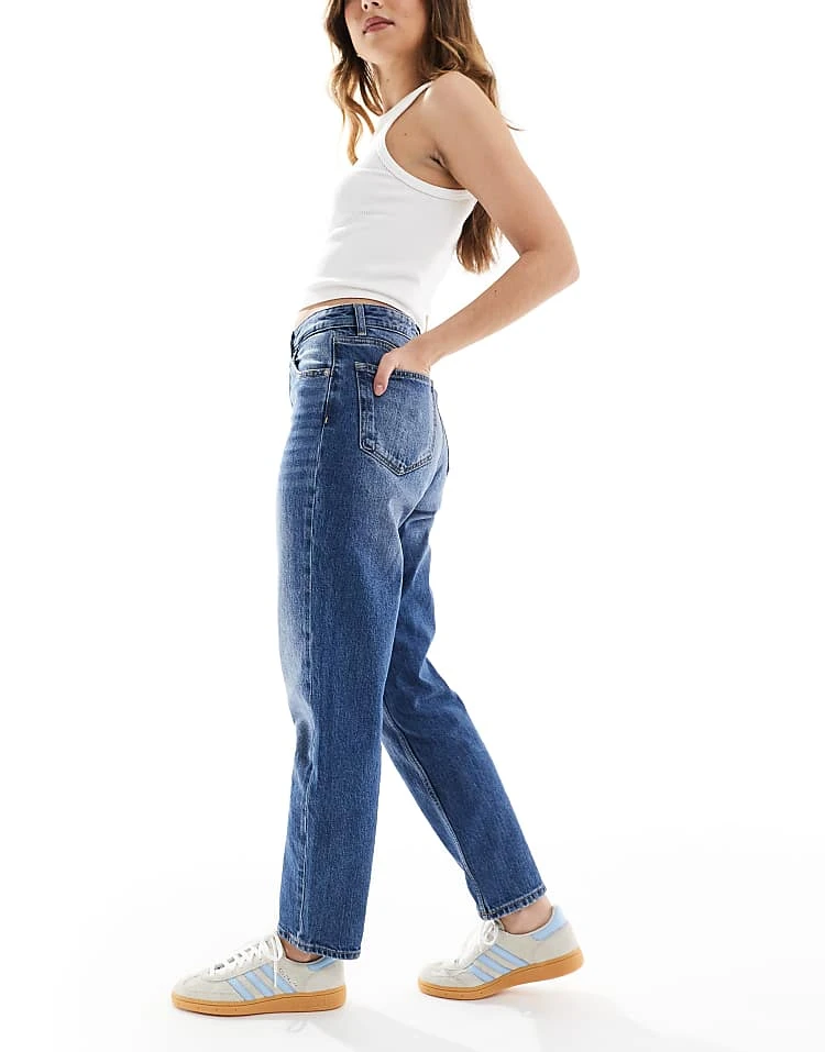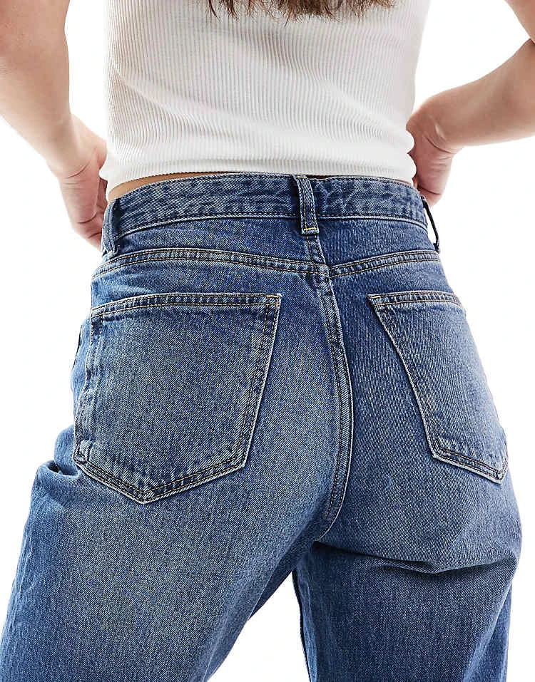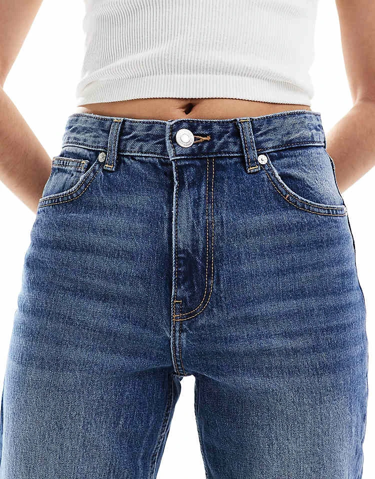 Bershka Clean Wide Leg Jeans In Authentic Dark Blue For Women
