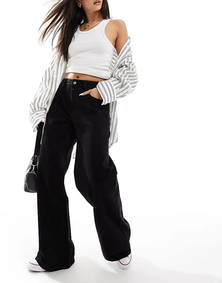Bershka High Waisted 90s Wide Leg Jeans In Washed Grey For Women