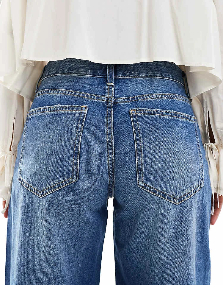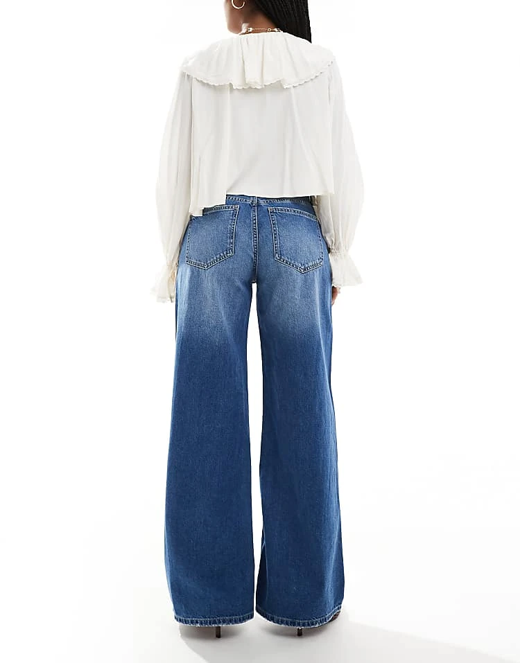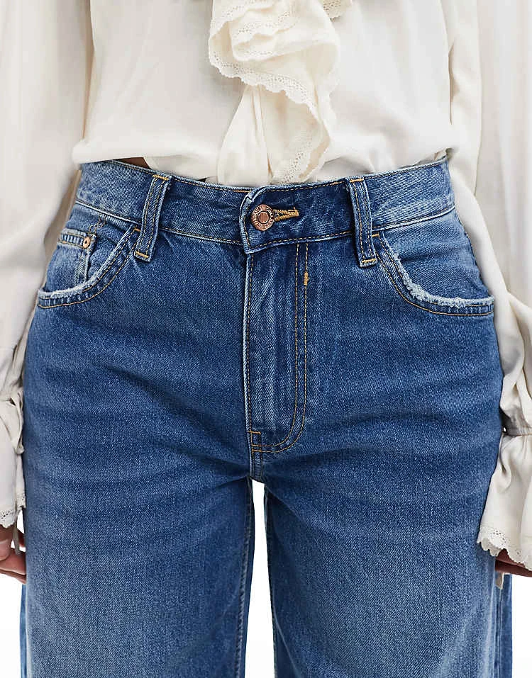 Bershka High Waisted Wide Leg Jeans In Light Wash Blue For Women