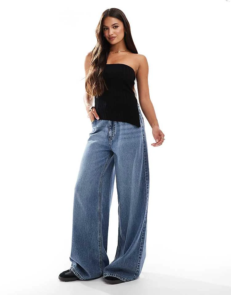 Bershka High Waisted 90s Wide Leg Jeans In Washed Grey For Women