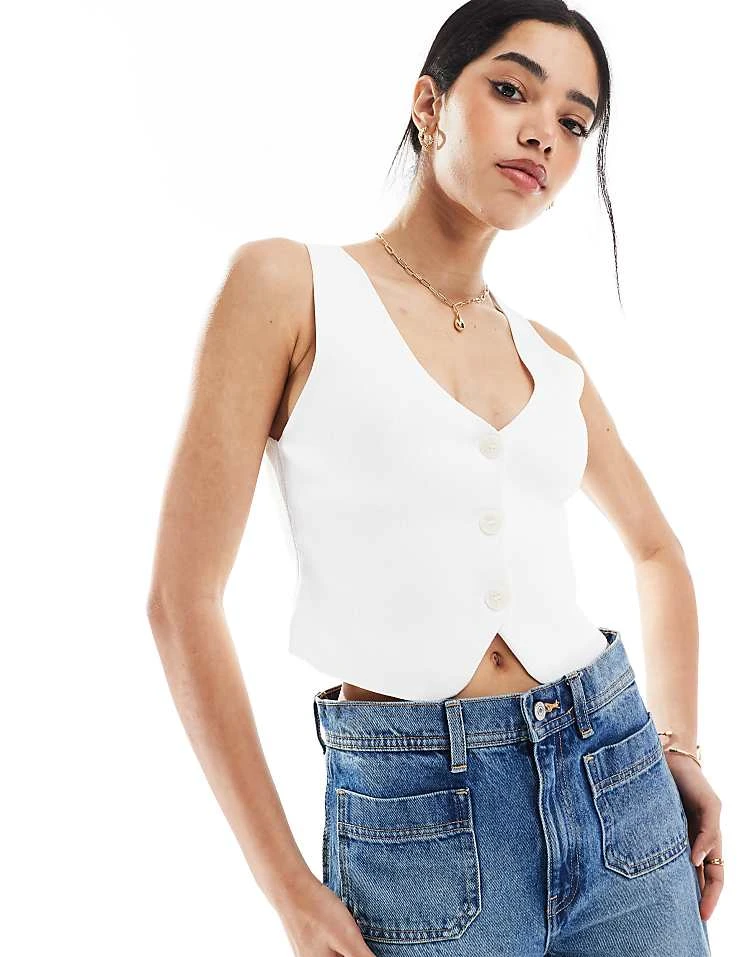 Bershka Tie Waist Wide Leg Linen Trousers In Ecru Stripe For Women